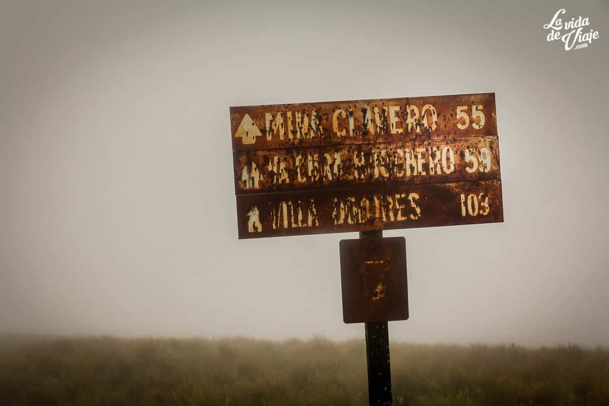 Hay noches y mañanas que no son fáciles. En las Altas Cumbres nos tocó niebla, lluvia y muchísimo frío. Este es el único lugar que encontramos para acampar, casi en el punto más alto del camino