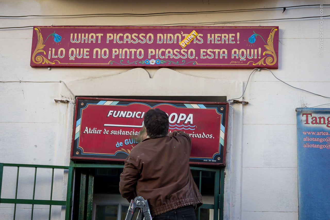 Continuamos pedaleando hasta llegar a la calle Caminito creada en 1959 por iniciativa de Quinquela Martín, uno de los pintores argentinos más populares del país. Se la bautizó así por el célebre tango “Caminito”, cuya letra se refiere a un camino rural de la provincia de La Rioja.