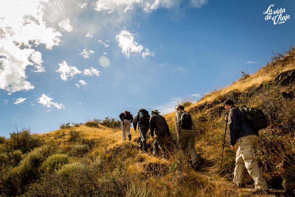 Zarpamos desde el puerto Punta Bandera, ubicado a 50 kilómetros de El Calafate, para hacer un trekking de 5 horas por la Estancia Cristina. Caminamos por los senderos en donde los peones hibernaban con sus animales años atrás. Sentimos las cuatro estaciones en un mismo día: nubes, sol, lluvia y viento durante los 12 kilómetros. No en vano Viva Patagonia llama a este recorrido “Wild Trek” (o caminata salvaje). Y así fue que nos adentramos hacia estos caminos salvajes de la Península Herminita.