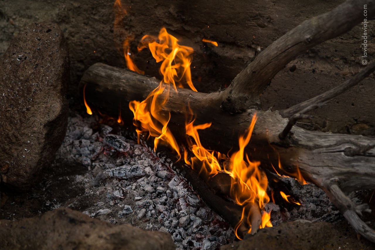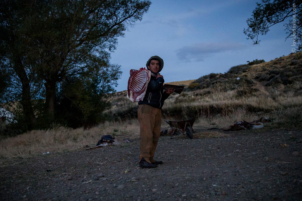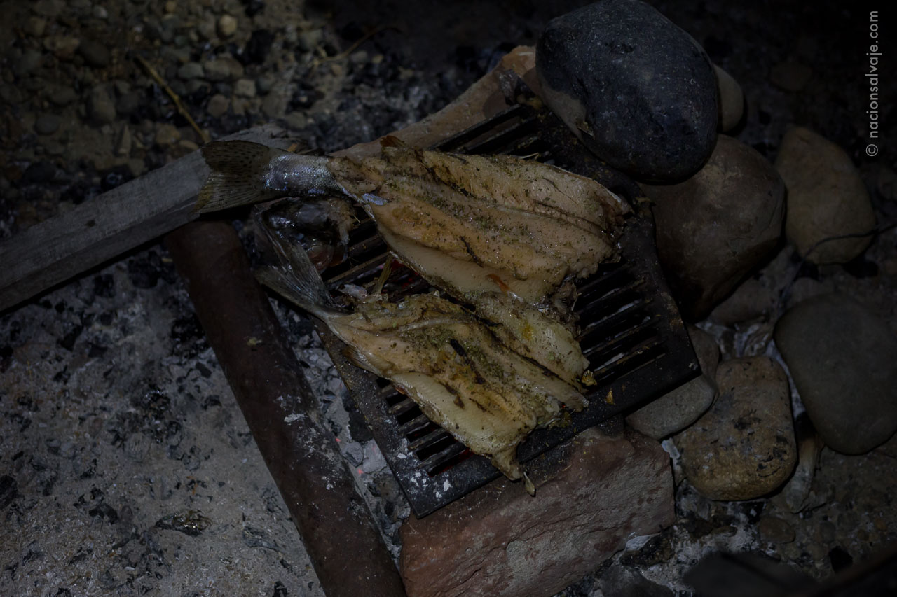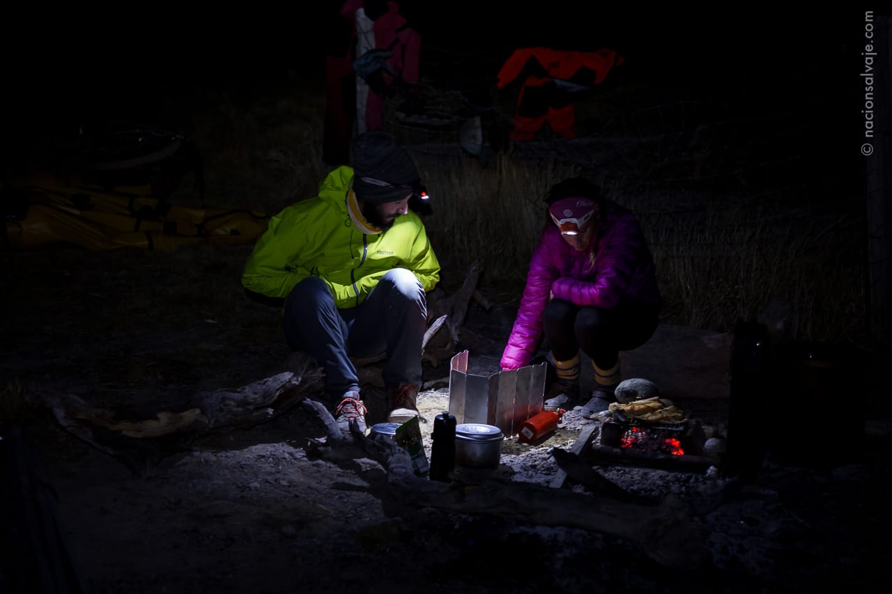 Llegamos temprano a Los Plateados, un puesto abandonado. Javi (más optimista que pescador) agarra su equipo y entre chicanas y chistes camina con su traje seco aún puesto para tirar la caña donde la teoría dice que está el pique: en la unión de un pequeño arroyo con el gran río. La teoría está de su lado y antes de irse nos dice que vayamos prendiendo el fuego que en un rato comemos trucha.