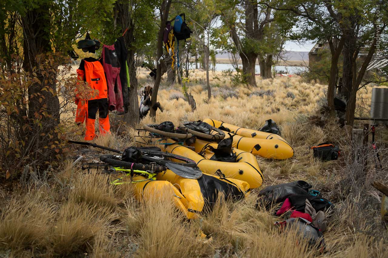 Tenemos todo listo, pero también tenemos muchas dudas. Estamos cerca del final y hay que tomar otra vez la decisión de si seguimos por agua o por tierra. Hoy el viento no es un problema y podríamos ir por el río, sin embargo si pasa lo que el pronóstico dice que puede pasar mejor estar sobre las bicis que arriba de los botes. Decidimos esperar. Comida no nos falta y si mañana no podemos remar no nos va a quedar otra que pedalear hasta Piedrabuena.