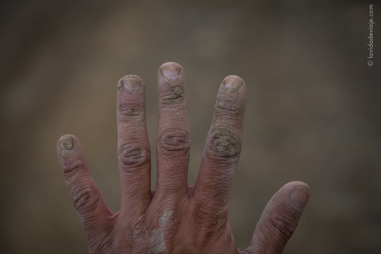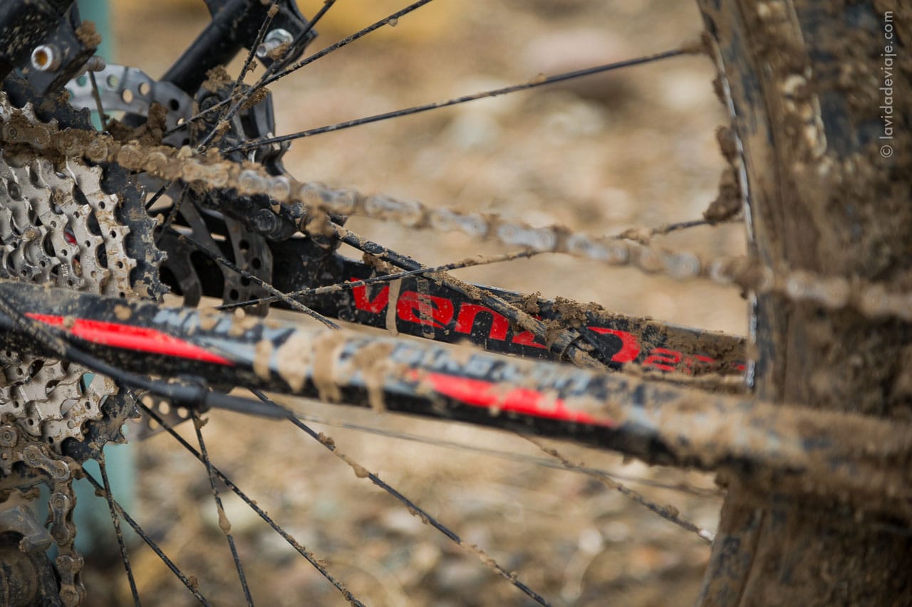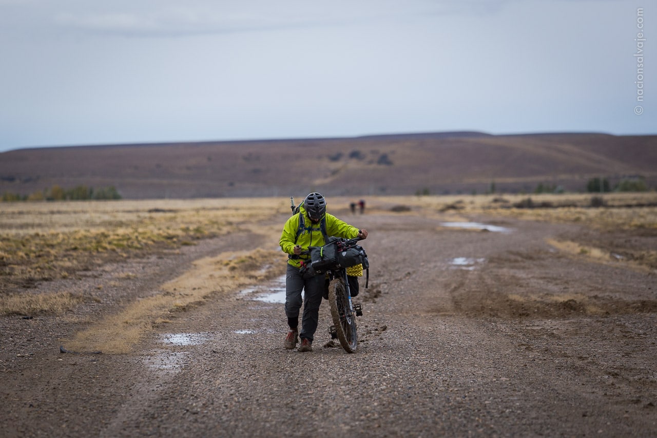 Las pocas chances que teníamos de llegar por agua desaparecen. Llovió toda la noche y ahora el viento está limpiando la tormenta que nos dejó 3 kilómetros de barro arcilloso que mezclado con las piedras se acumula en las vainas de las bicis hasta trabarlas. Lo que ayer hicimos en 20 minutos hoy nos lleva más de 3 horas. En cuanto volvamos a la ruta solo quedan 15 kilómetros hasta Piedrabuena y el final de este viaje.